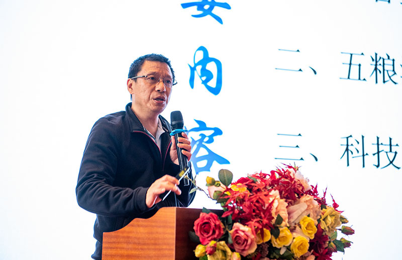 五粮液股份有限公司副总经理、副总工程师赵东作白酒技术研发交流分享,阐述了五粮液在浓香型白酒的技术研发工作。赵经理表示,五粮液的发展壮大,得益于深厚的酿酒技艺传承、精益求精的工艺要求,以及积极主动的科技创新。他指出,五粮液在“用心不计代价,用工不计成本,用时不计岁月”核心思想的指导下,通过“一极、三优、六首创、六精酿”的酿酒技艺,不断夯实酒的品质,并不断通过构建多层次的研发平台和大量的科研项目投入,利用产学研一体化研究,融合传统工艺与现代技艺,以科技创新促进企业转型升级,推动企业高质量发展。
